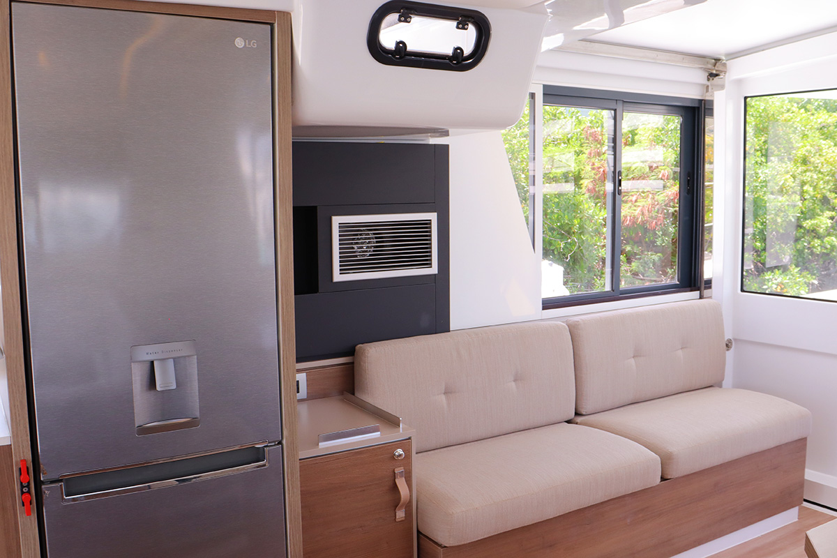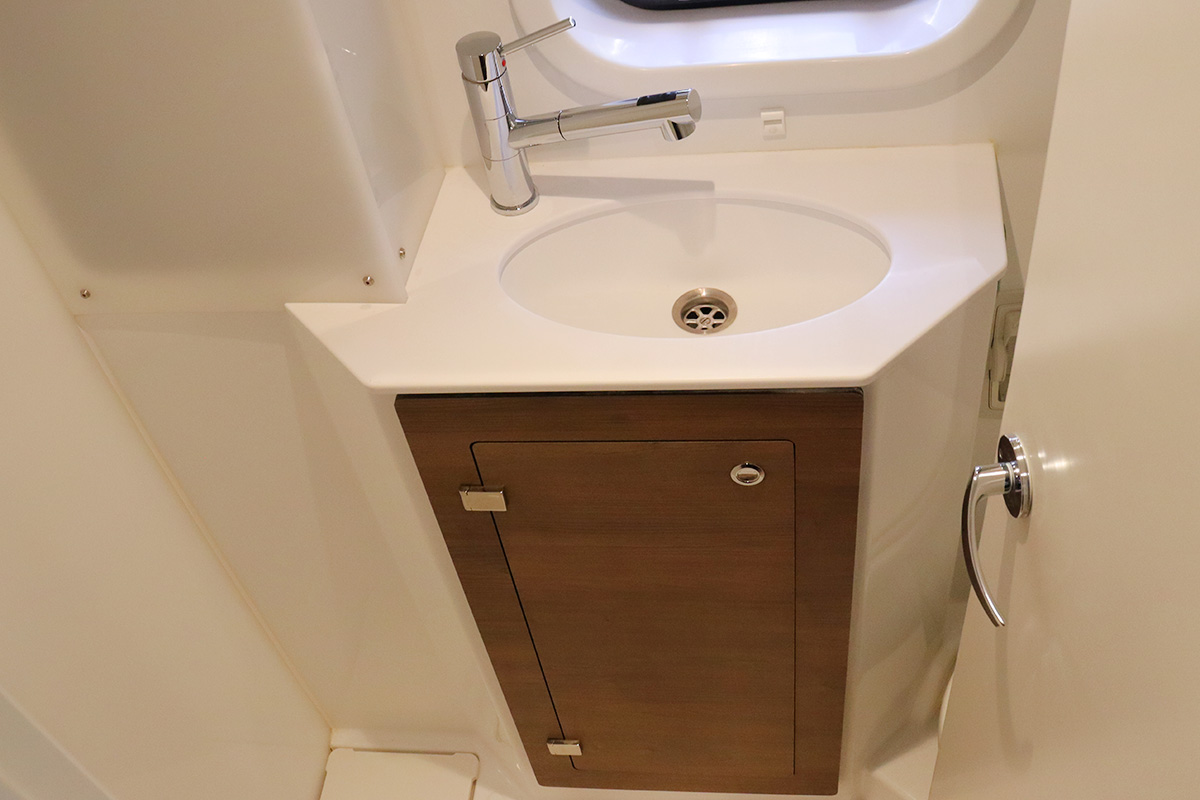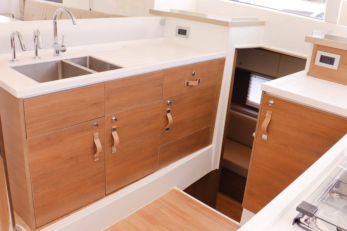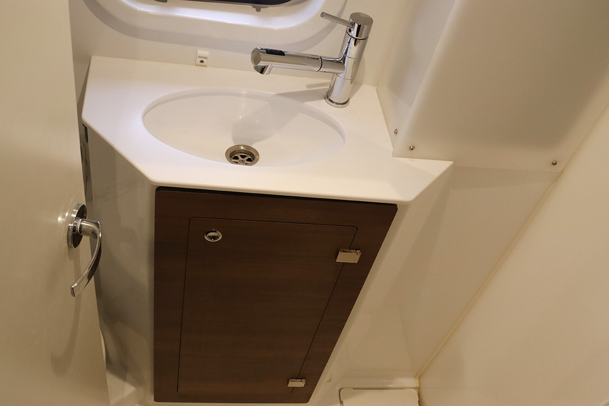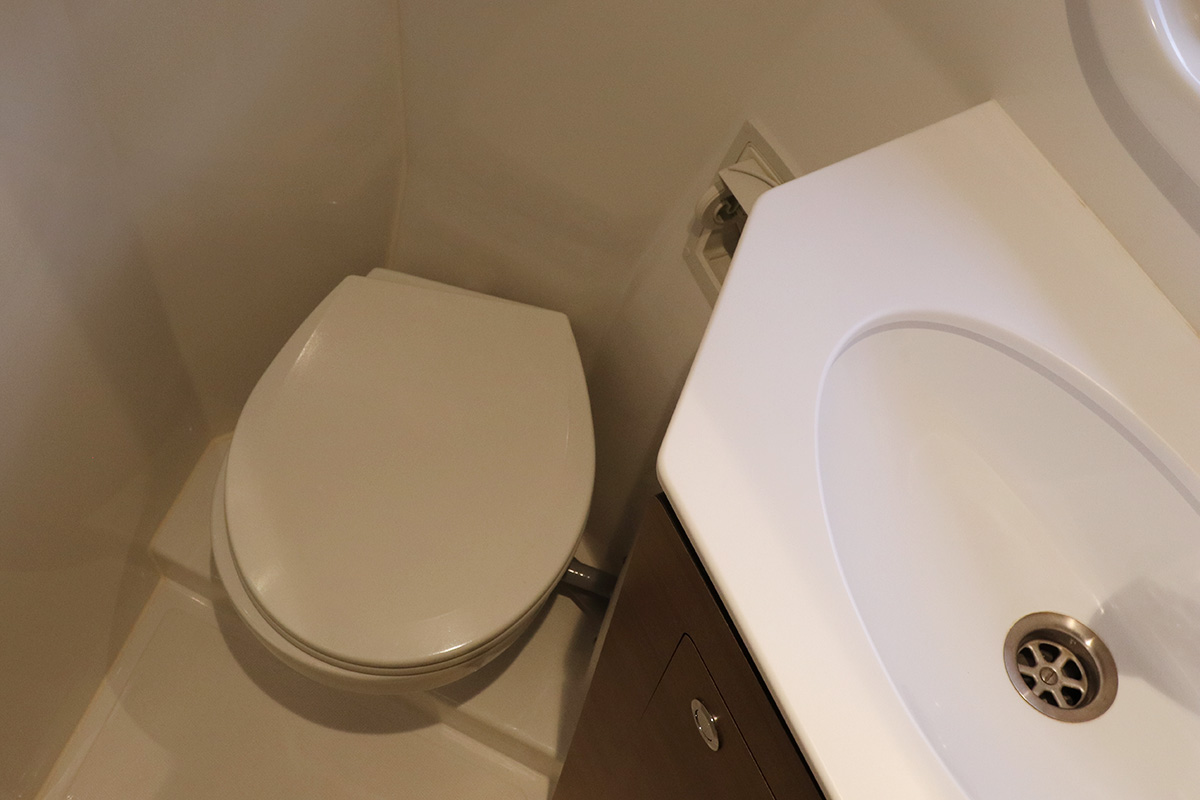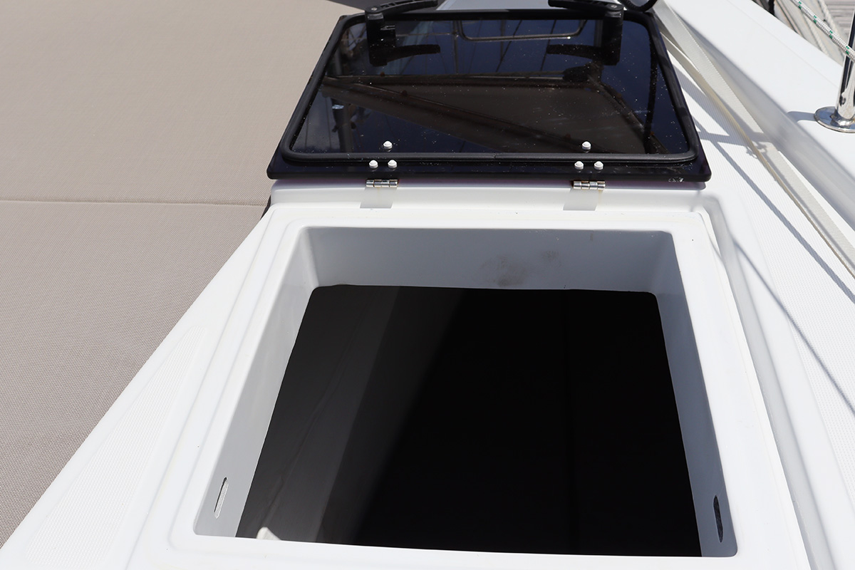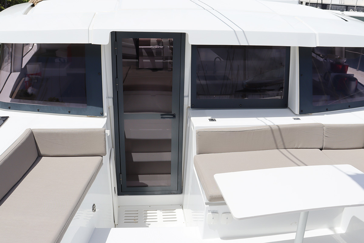 Finally you should know that the guest heads (washrooms in starboard hull) are not fitted with a shower head: they are toilet-only. The plumbing is there for a full ‘wet head’ but no shower head fitted! That said, the owner’s suite (port hull) has a wonderful and spacious full shower setup which can be shared with the whole crew. Other minor points: no microwave (we didn’t miss it) and no bow thruster, both of which were on the Yacht Overview.