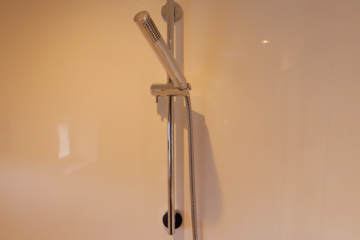 – there is only one(1) shower not three(3) as advertised, as the guest heads are not fitted with shower heads