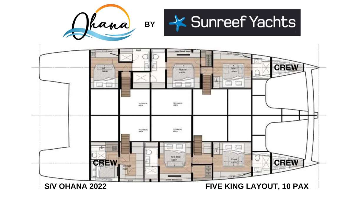 Ohana 80, is a luxury sailing yacht ideal for exclusive getaways, intimate charters and island adventures. Ohana accommodates up to ten guests in five deluxe, king-size ensuite cabins. A custom layout featuring hand-picked design elements made in-factory at Sunreef’s shipyard in Poland ensures she is one-of-a-kind.